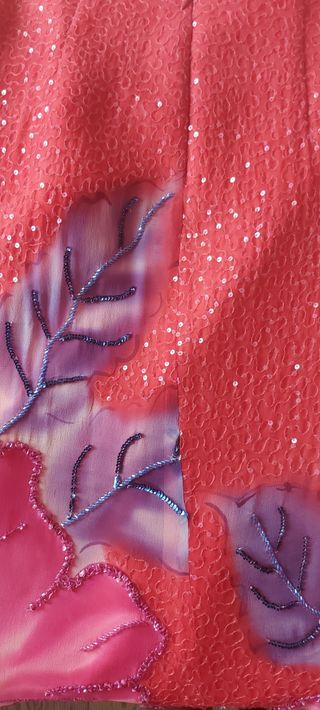 Falda larga de seda, lentejuelas y pedrería. Fondo naranja. Un solo uso. Talla 42/44
