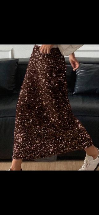 Elegante falda midi con lentejuelas. - Diseño de lentejuelas brillantes. - Corte midi. - Cremallera trasera para cierre. Forro interior Está nueva, quité la etiqueta para estrenarla en nochebuena pero no la usé porque me está un poco estrecha