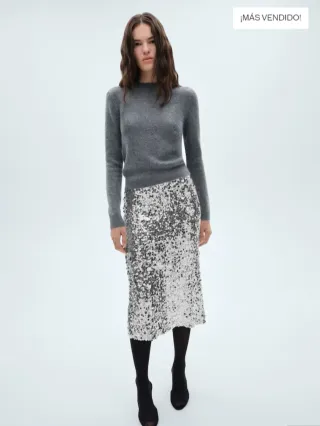Falda midi lentejuelas Mango