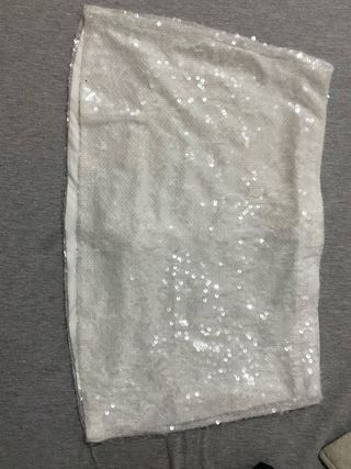 Falda corta con lentejuelas plateadas de la marca Shein. - Diseño brillante y llamativo. - Ideal para eventos o para darle un toque especial a tu outfit.