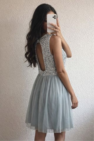 Vestido de fiesta plateado lentejuelas