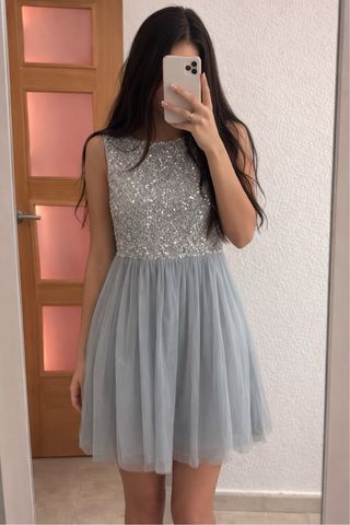 Vestido de fiesta lentejuelas plateadas