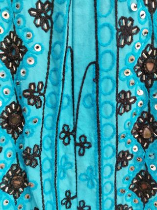 Falda bordada de algodón . Sin forro. Lentejuelas plata. La talla entre S y M.