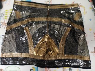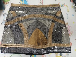 Preciosa minifalda. ✨ - Es de color negro con detalles dorados. - Está confeccionada con lentejuelas. - Tiene una bonita textura. - Ideal para ocasiones especiales. - Talla S - Nueva