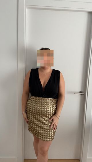 Falda MIDI lentejuelas con doradas. Sin estrenar