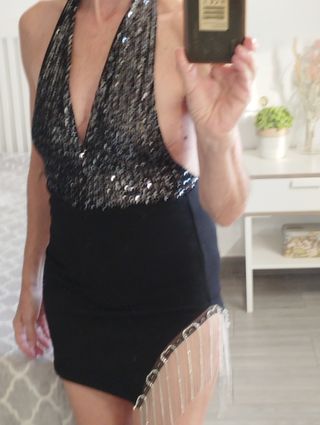 Vestido fiesta negro lentejuelas plata