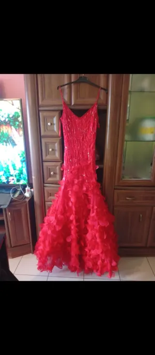 Vestido rojo con lentejuelas y volantes