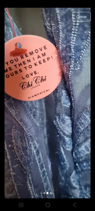 Elegante vestido de fiesta en tono beige con un toque de brillo dorado. Perfecto para ocasiones especiales. Hago envíos por wallapop entrega en oficina de correos - Cuello adornado con lentejuelas doradas. - Diseño con abertura en el escote. - Falda con detalle de flecos largos.