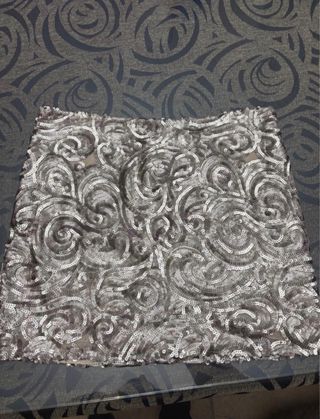 Falda corta con un diseño de lentejuelas plateadas. - Diseño de volutas.