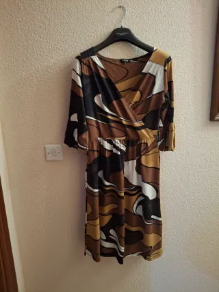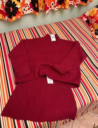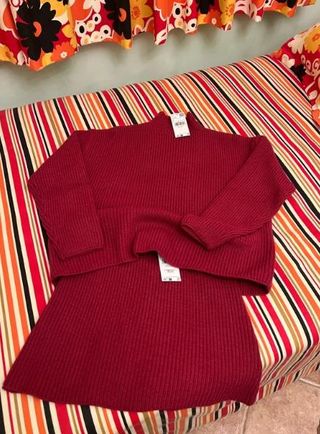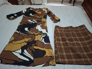 Conjunto de vestido y falda. Vestido marca Elogy, Tonos otoño, invierno Manga francesa Cruzado Se adapta al cuerpo, punto muy suve Con caida Regalo la falda,segun fotos En pwrfecto estado -