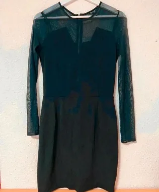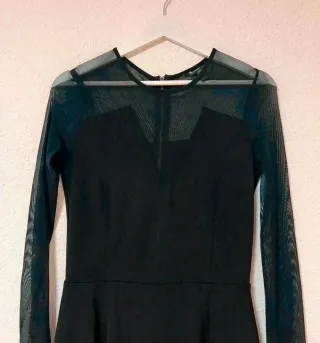 Vestido elegante de Mango con detalles de transparencias en la parte superior y mangas largas. - Diseño con escote ilusión. - Cuerpo ajustado. - Tejido principal opaco en falda. - Mangas de malla semitransparente.