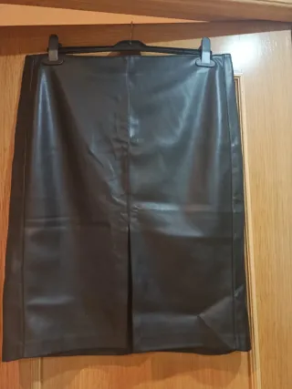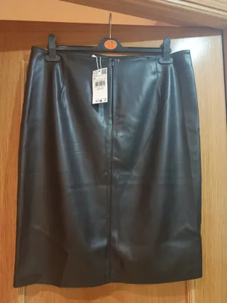 Falda de polipiel con un diseño moderno y elegante. - Detalle de volante en el bajo. - Tacto suave y acabado mate.
