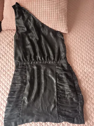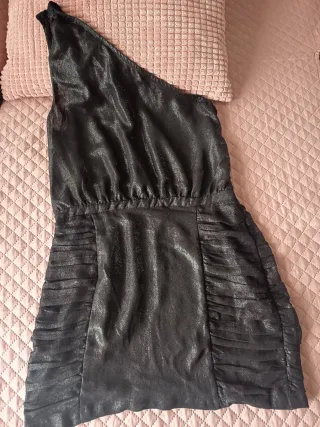 Vestido de fiesta de Mango, ideal para eventos especiales. Su diseño asimétrico y el tejido brillante le dan un toque sofisticado. - Diseño de un solo hombro. - Tejido con acabado satinado y ligeramente brillante. - Cintura elástica. - Falda con detalles fruncidos.