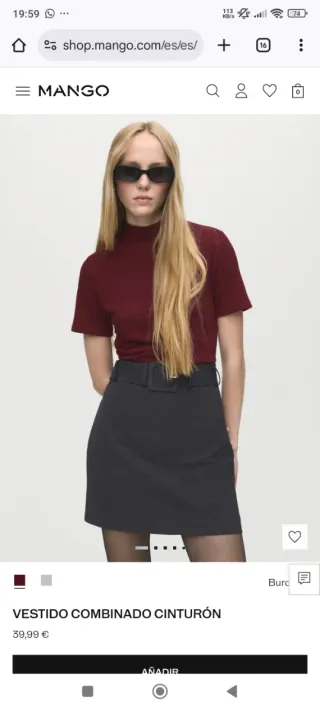 Vestido de Mango con un diseño moderno y elegante. - Combina un top de cuello alto con una falda. - Incluye un cinturón a juego.