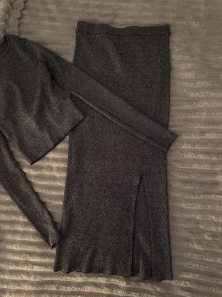 Conjunto de dos piezas de Zara, ideal para un look elegante. - Top de punto con manga larga. - Falda a juego. - Tejido con hilo de lurex para un toque brillante. *si quieres las piezas x separado tmb