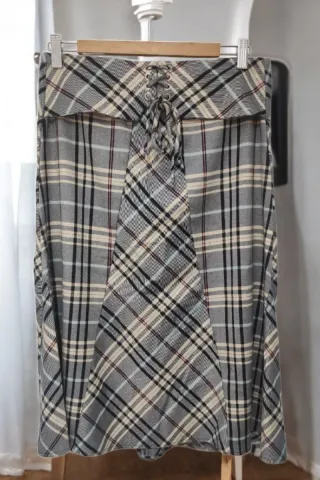 Falda corta con estampado de cuadros estilo tweed. Muy elegante y fácil de combinar, ideal para otoño/invierno. En muy buen estado, sin estrenar Queda preciosa con botas o tacones. Talla XS - Diseño de cuadros. - Tejido tipo tweed.