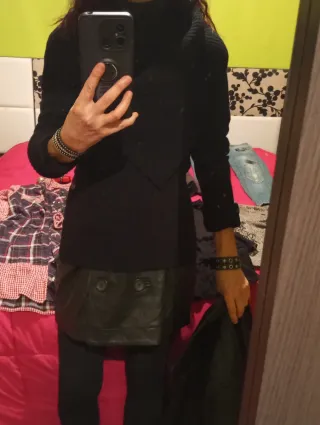 Falda de la marca Mango. - Diseño de cuero sintético Tiene 6 botones grandes que dejan abrir la falda x completo La tela es suave parece cuero y está forrada Queda muy mono puesto Perfecto estado 36 y medio cm cintura 38y medio cm largo