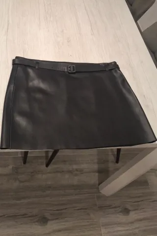 Mini falda de polipiel negra, sin estrenar.Talla-M - Cinturón con hebilla incluido. - Cremallera lateral.