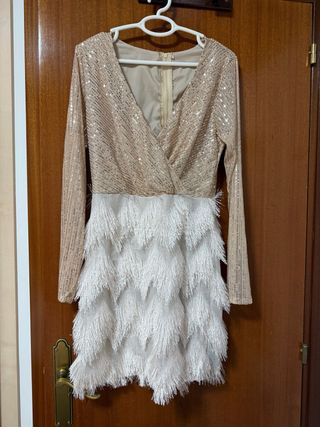 Vestido lentejuelas dorado y blanco