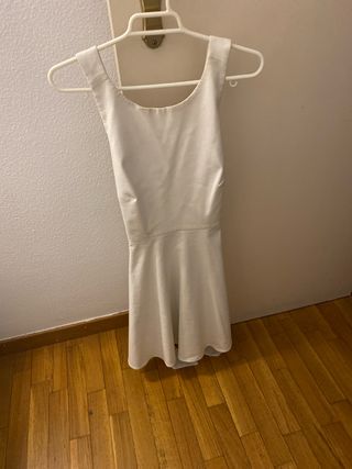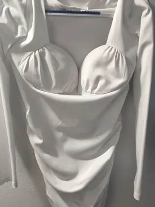 Vestido blanco de Zara con manga larga y escote en V. Utilizado dos veces - Cintura elástica fruncida. - Falda con volantes. - Puños elásticos.