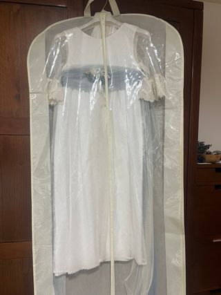 Vestido de comunión de la marca Coconut, se puede ver y probar. En perfecto estado como nuevo. Comprado en abril 2025 en El Corte Ingles, precio original 385 eur Confeccionado en tejido blanco con delicados topos y detalles de tul y encaje beige - Cuerpo con manga larga y puños de encaje. - Fajín azul con adornos florales y pedrería. - Falda con puntilla en el bajo. Corresponde a una talla 9 que son los 110cm que van desde el hombro hasta el suelo, recomendado para una niña de 130 cm de altura, contorno de pecho 72cm y cintura 65cm Si interesa tengo la chaquetita a juego, calcetines nuevos sin usar con etiqueta y zapatos.