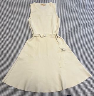 Elegante vestido de Michael Kors en color blanco, perfecto para cualquier ocasión. - Diseño sin mangas. - Cinturón a juego con detalle de anilla. - Falda con vuelo.