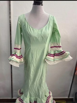 Vestido de flamenca verde y blanco