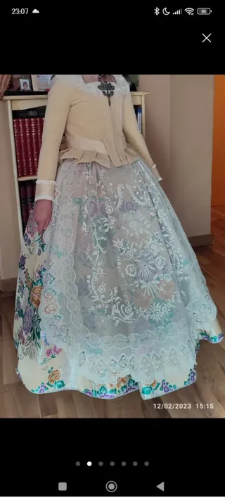 Traje de Fallera Talla S/M. Largo falda 90cm.