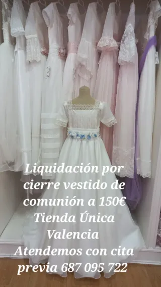 Vestido de comunión elegante y delicado. - Diseño clásico. - Mangas cortas con detalle. - Falda voluminosa. Alta costura Costo 750