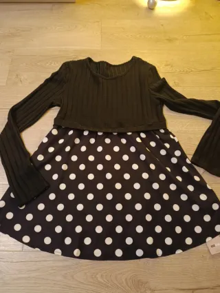 Vestido de Zara con un elegante estampado de lunares. - Diseño de manga larga. - Cuello y puños blancos. - Falda plisada.