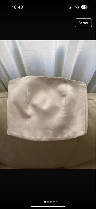 Top blanco satinado bimani studio Cremallera en lateral Palabra de honor / sin mangas ni hombro Vendo la falda del conjunto Talla XS - S (más bien como una S)