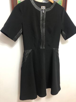 Vestido negro con cremallera y cuero