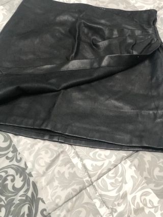 Falda corta cuero sintético.