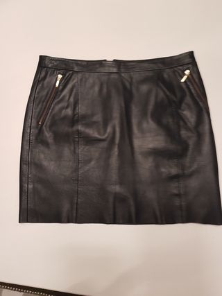 Falda de Mango Suit con efecto piel, usada una sola vez. - Diseño moderno y versátil. - Acabado brillante que imita el cuero. - Ideal para combinar con diferentes estilos.