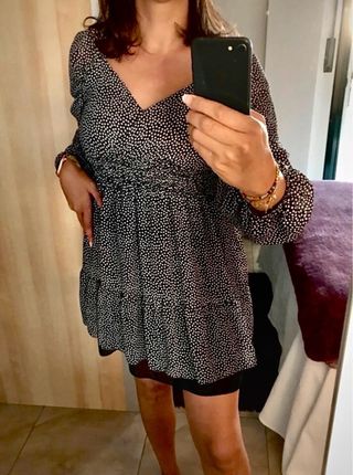 👗 Precioso vestido de manga larga. Forro interior. No transparenta. Estampado con lunares. Falda de volantes. Con goma elástica en la cintura. 👗 Medidas: Ancho hombro: 38 cm. Largo: 85 cm. 👗 Nuevo. Sin etiqueta. 🤗 Envío rápido 🤗 #nataliaosona #lolalolita #dulceida #pombo #vestido #dress #vestidomujer #negro #mango #mangowoman #mango #vestidolunares #lunares #topos #dress #mangodress #negro