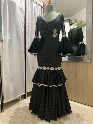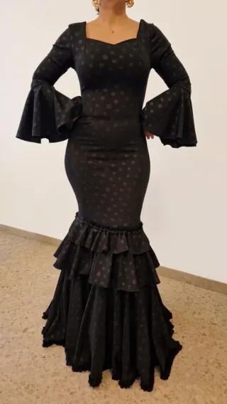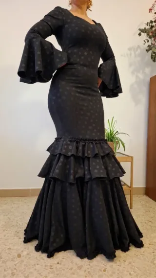 Traje Flamenca negro de lunares talla 42