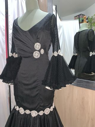 Traje de flamenca lunares blanco y negro