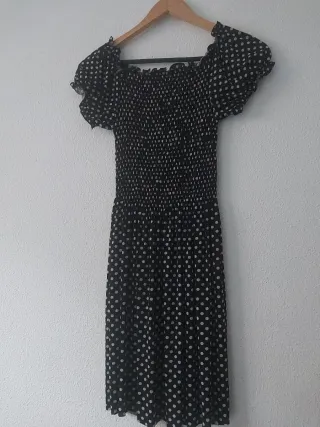 Vestido de Zara con un diseño clásico de lunares. - Diseño sin mangas. - Falda con vuelo y pliegues.