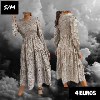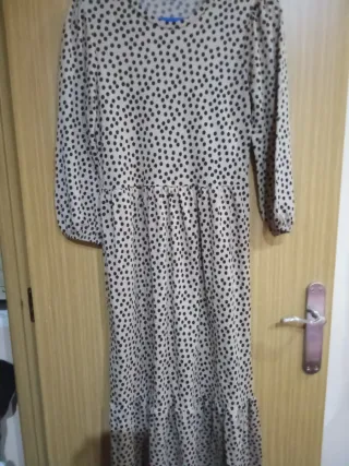 Vestido de manga larga con estampado de lunares.( No se llegó a usar ) - Diseño con cuello en V. - Cintura elástica. - Falda con vuelo en capas. Entrego metro carpetana Madrid linea 6