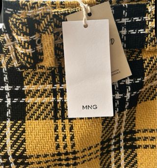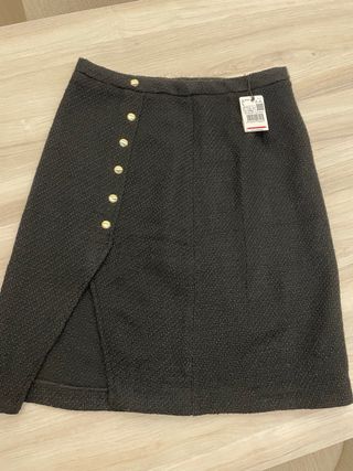 Falda de Mango sin estrenar, con un diseño elegante y moderno. - Tejido texturizado en color negro. - Detalle de botones dorados en la parte delantera Forro interior - Abertura lateral. - Talla L.