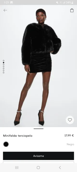 Falda terciopelo Mango Negra