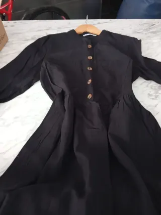 Vestido de verano de la marca Mango. Color negro liso con botones y falda de volantes. Talla M. Muy poco uso, como nuevo. Es una prenda básica que combina con todo. Muy fresquito y cómodo. - Corte holgado con volantes. - Cuello camisero. - Cierre de botones. - Manga larga. #Mango #VestidoNegro #BohoStyle #Casual #SummerDress #TallaM.