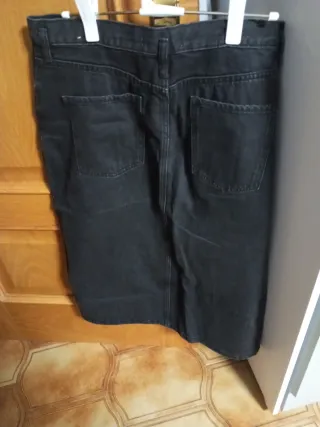 Falda de algodón estilo tejano. Tiro alto. Diseño recto. Diseño midi. Dos bolsillos delanteros. Bolsillo portamonedas. Dos bolsillos de parche en la parte posterior. Trabillas. Abertura en el bajo. Cierre delantero de cremallera y botón. Marca Mango. Talla XL. Medidas en fotos. Disponible hasta el 10 de febrero que es cuando termina el plazo de devolución.