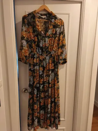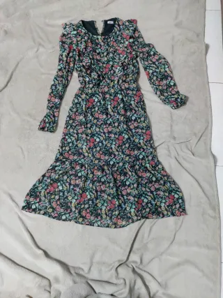Vestido de manga larga con falda con vuelo. Pone talla xs pero es grande, como una s. Sienta muy bien puesto. - Corte entallado en el cuerpo. - Diseño con falda que aporta movimiento. - Manga larga.