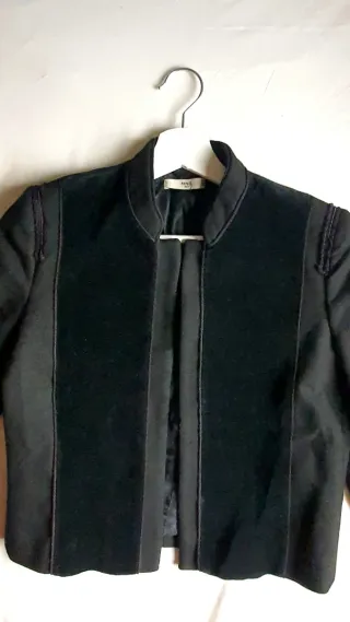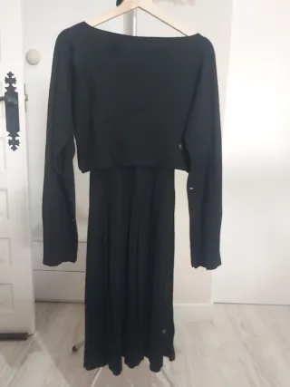 Conjunto de vestido y chaquetilla. Vestido largo con falda plisada. Chaquetilla corta con manga larga. Botones que cierran las mangas de la chaquetilla Medidas aproximadas: Chaquetilla: Largo 40 cm Sisa es abierto. Vestido: Largo 106 cm Sisa de 38 a 58 cm (muy elastico)