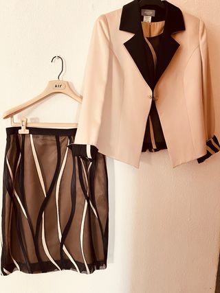 Traje Chaqueta, chaleco y Falda Beige y negro.