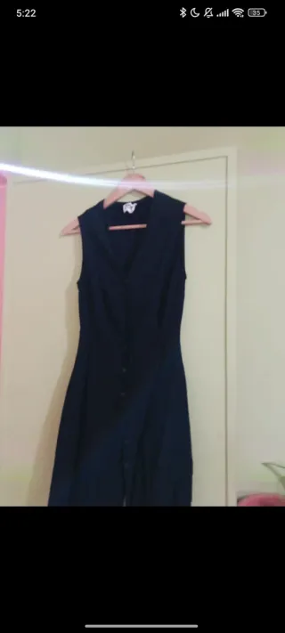 Vestido negro elegante, ideal para diversas ocasiones. - Diseño sin mangas. - Cuello camisero. - Cierre de botones frontales. - Falda con caída.