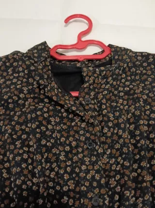 Vestido con un llamativo estampado floral sobre fondo negro. Presenta un diseño con cuello camisero y manga larga, ideal para un look casual o más arreglado. - Estampado de flores - Cuello camisero. - Manga larga. - Diseño con volantes en la falda.