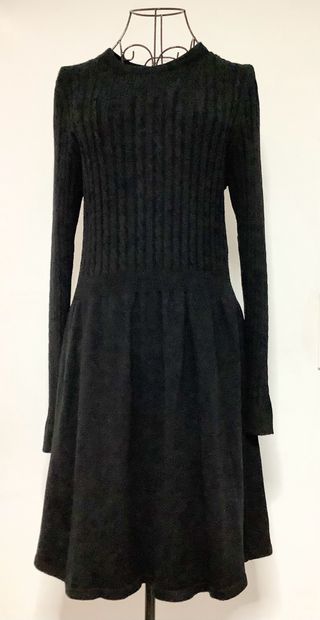 Vestido de invierno con un diseño elegante y moderno. - Tejido de punto acanalado en el torso. - Falda con vuelo. - Mangas largas.