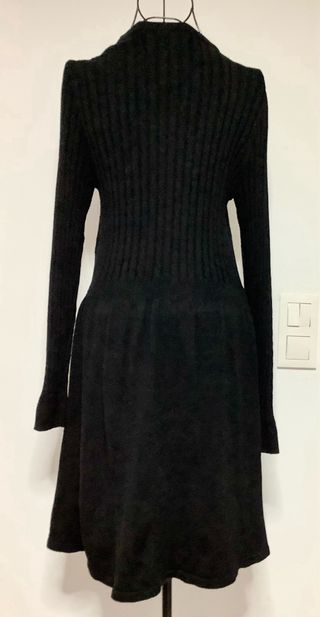 Vestido de Lurdes Bergada negro manga larga y cuello alto. Talla S, cuello estrecho, ver fotos. Bolsillo frontal Falda con mucho vuelo.